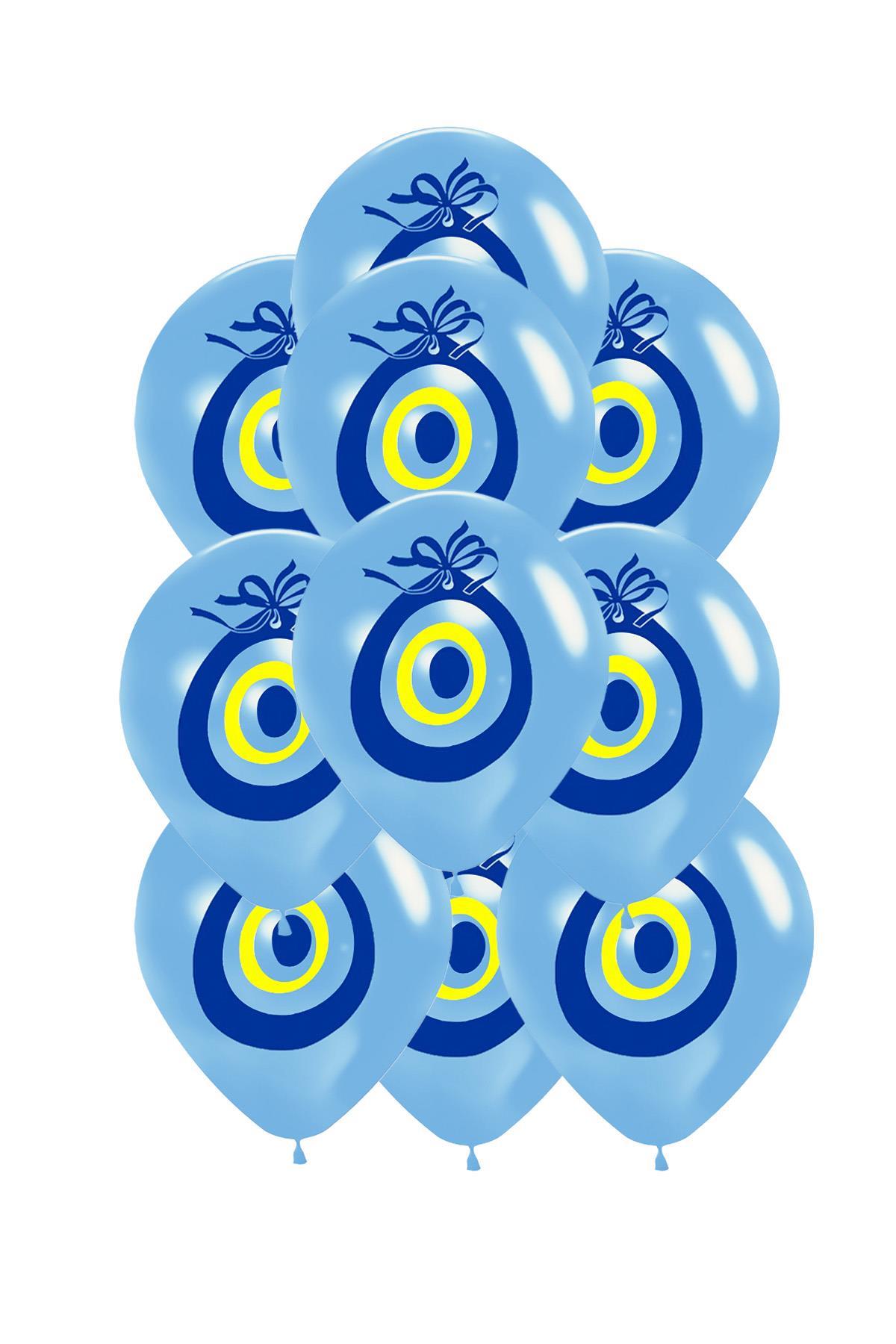 12 İnç Nazar Boncuklu Açık Mavi Maşallah Balon 10 Adet