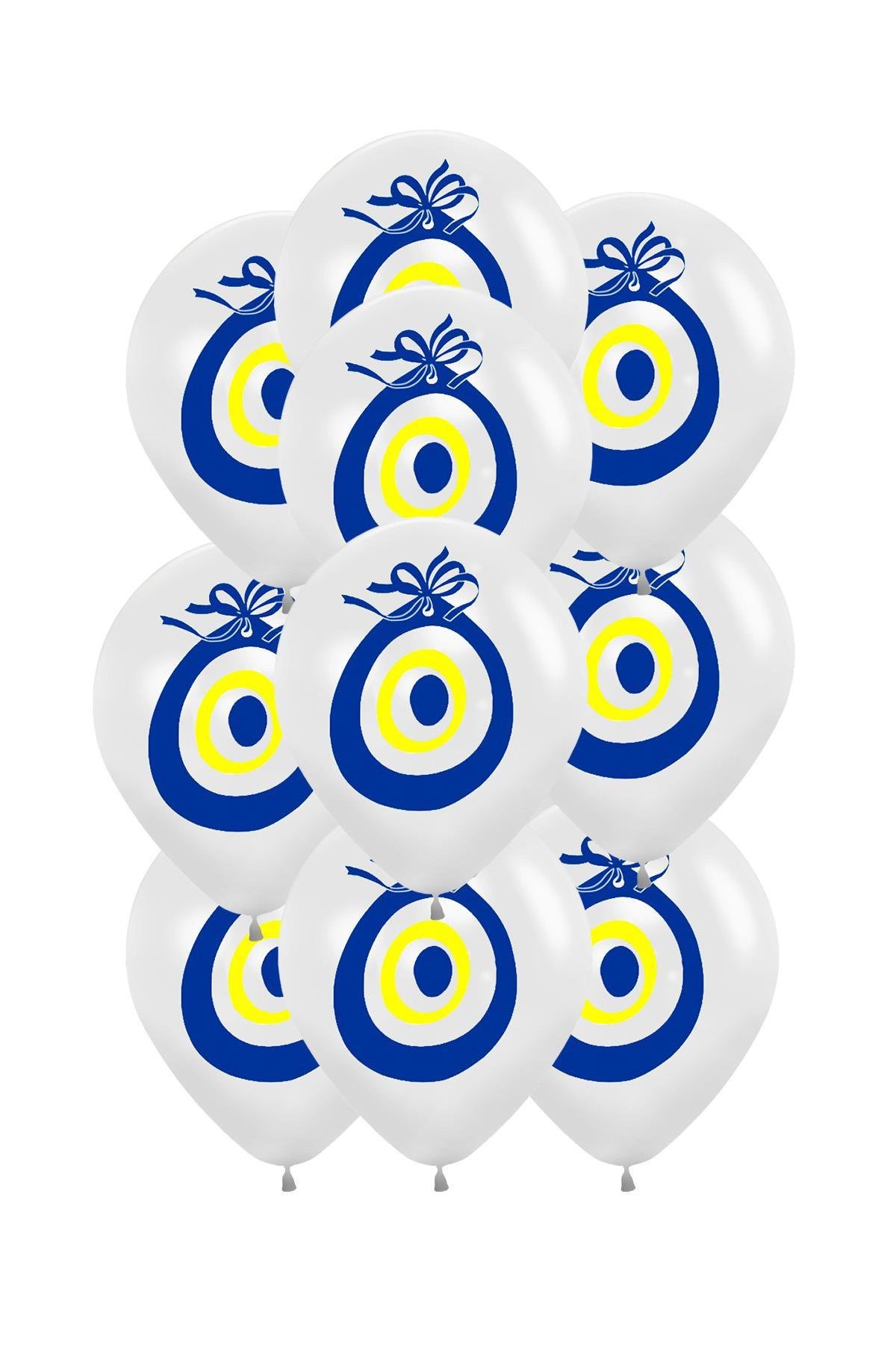 12 İnç Nazar Boncuklu Beyaz Maşallah Balon 10 Adet