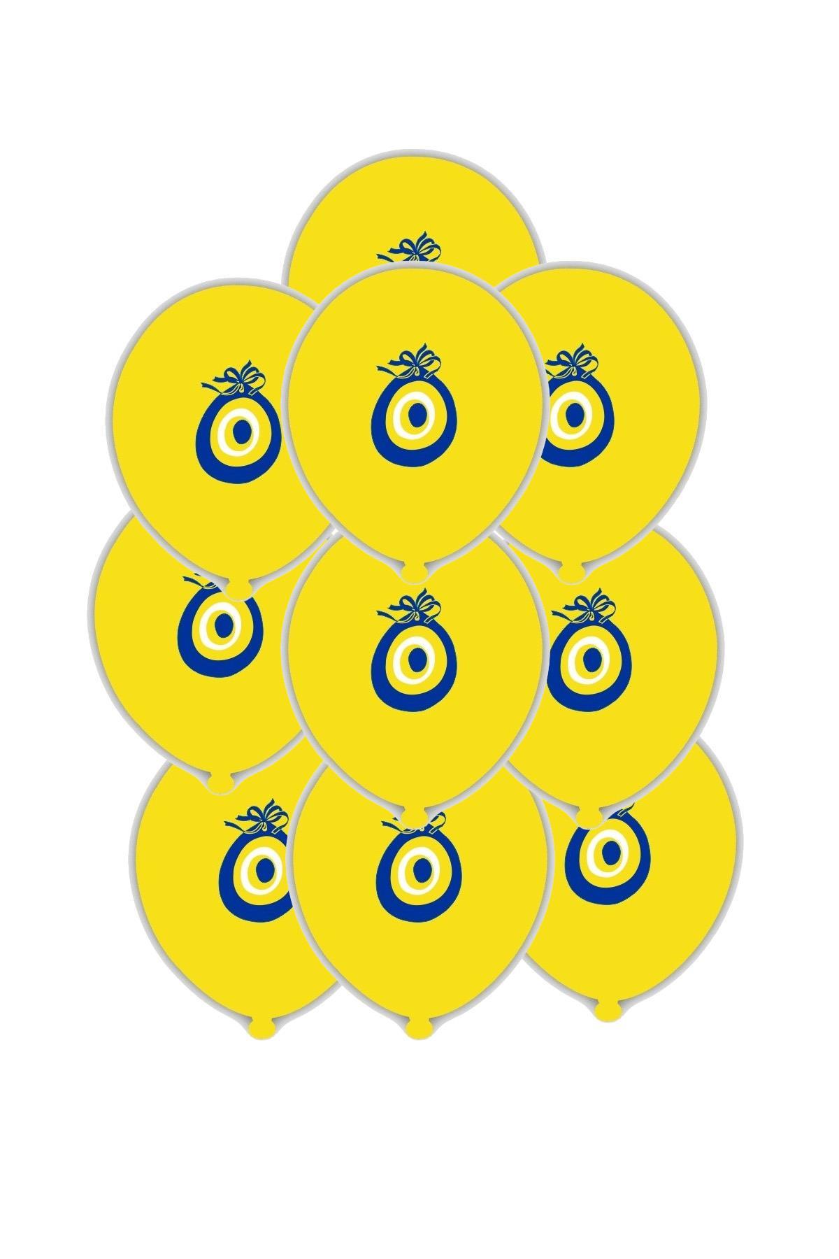 12 İnç Nazar Boncuklu Sarı Maşallah Balon 10 Adet