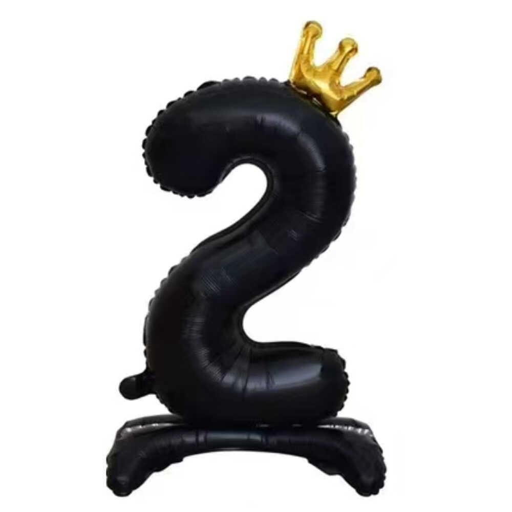2 Rakam Siyah Renkli Ayaklı ve Kral Taç'lı Folyo Balon 34 İnç 76 Cm