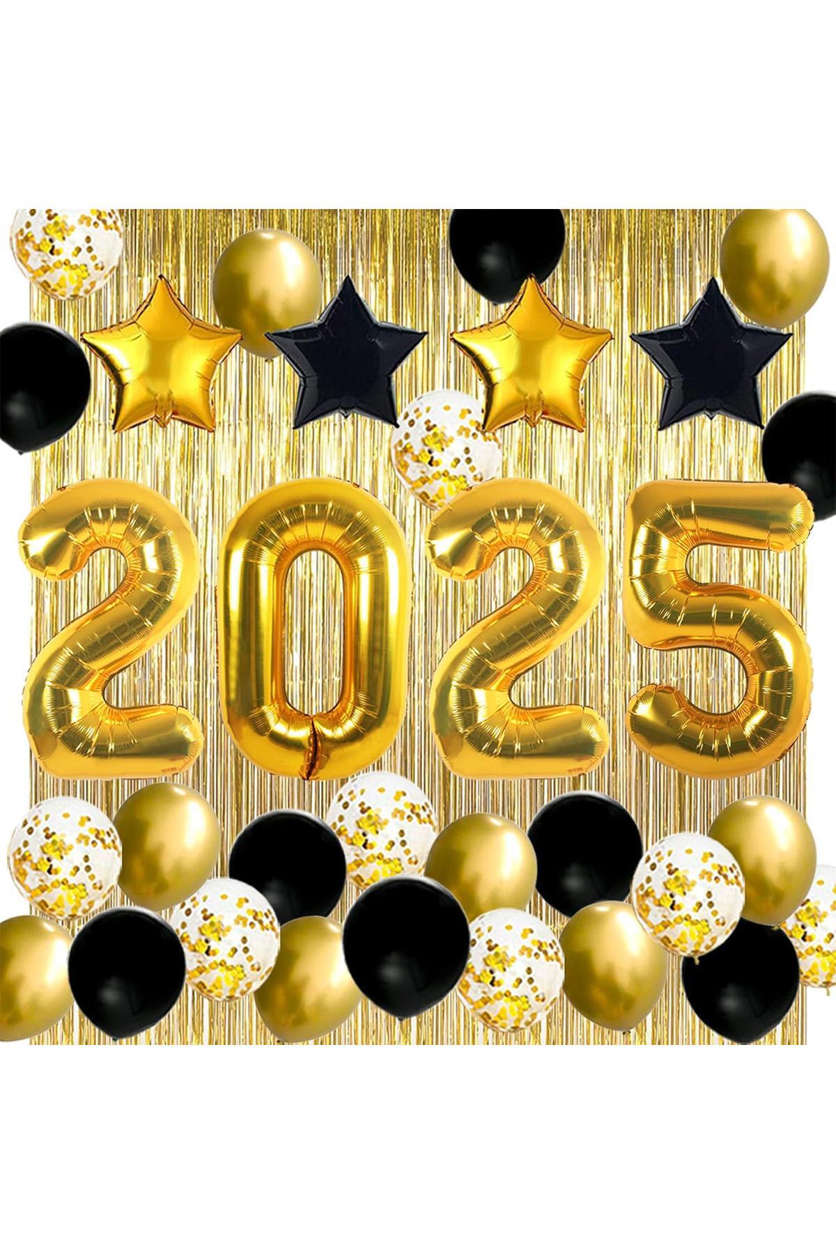 2025 Temalı Gold Renkli Lüks Mezuniyet Kutlama Seti