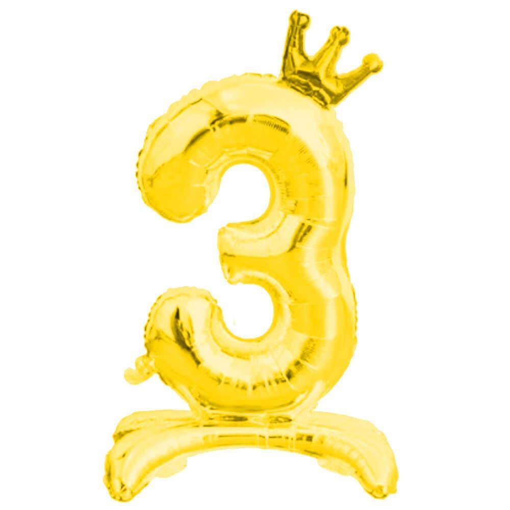 3 Rakam Gold Renkli Ayaklı ve Kral Taç'lı Folyo Balon 34 İnç 76 Cm