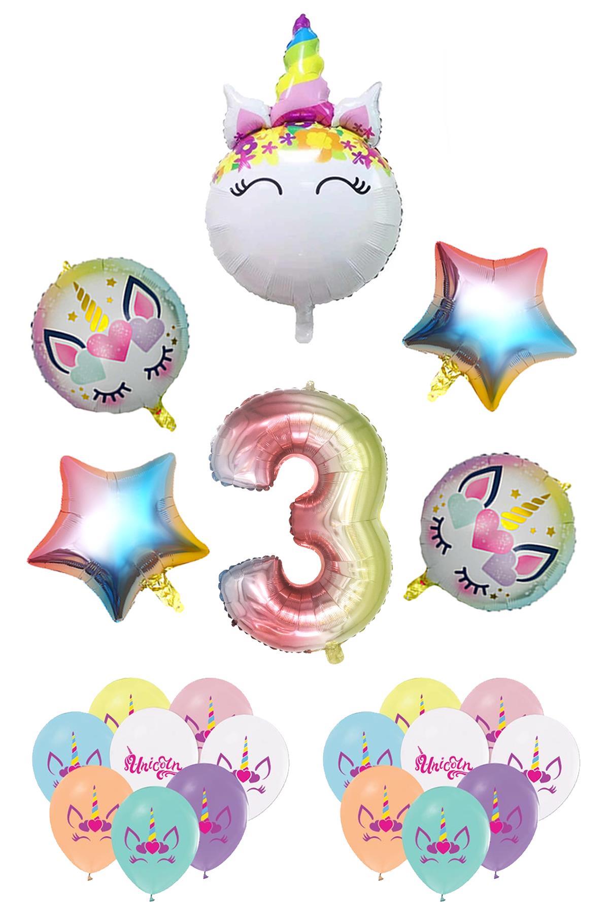 3 Yaş Gökkuşağı Konsepti Unicorn Temalı Doğum Günü Parti Kutlama Seti