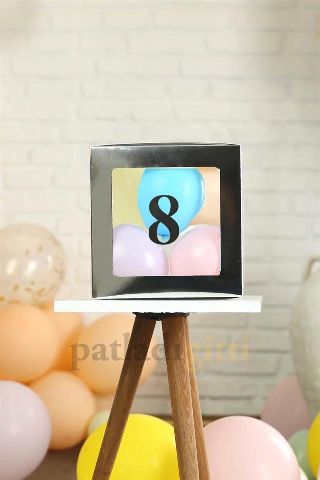 8 Rakamlı Gümüş Şeffaf Büyük Boy 25*25 cm Balon Kutusu Kendin Yap Doğum Günü Parti Kutlama Seti