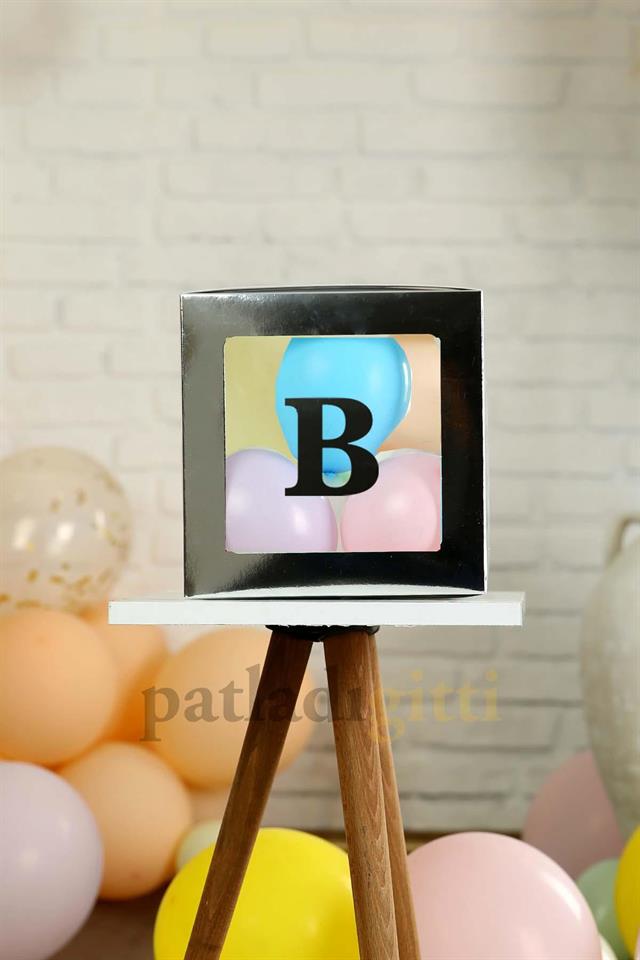 B Harfli Gümüş Şeffaf Büyük Boy 25*25 cm Balon Kutusu Kendin Yap Doğum Günü Parti Kutlama Seti