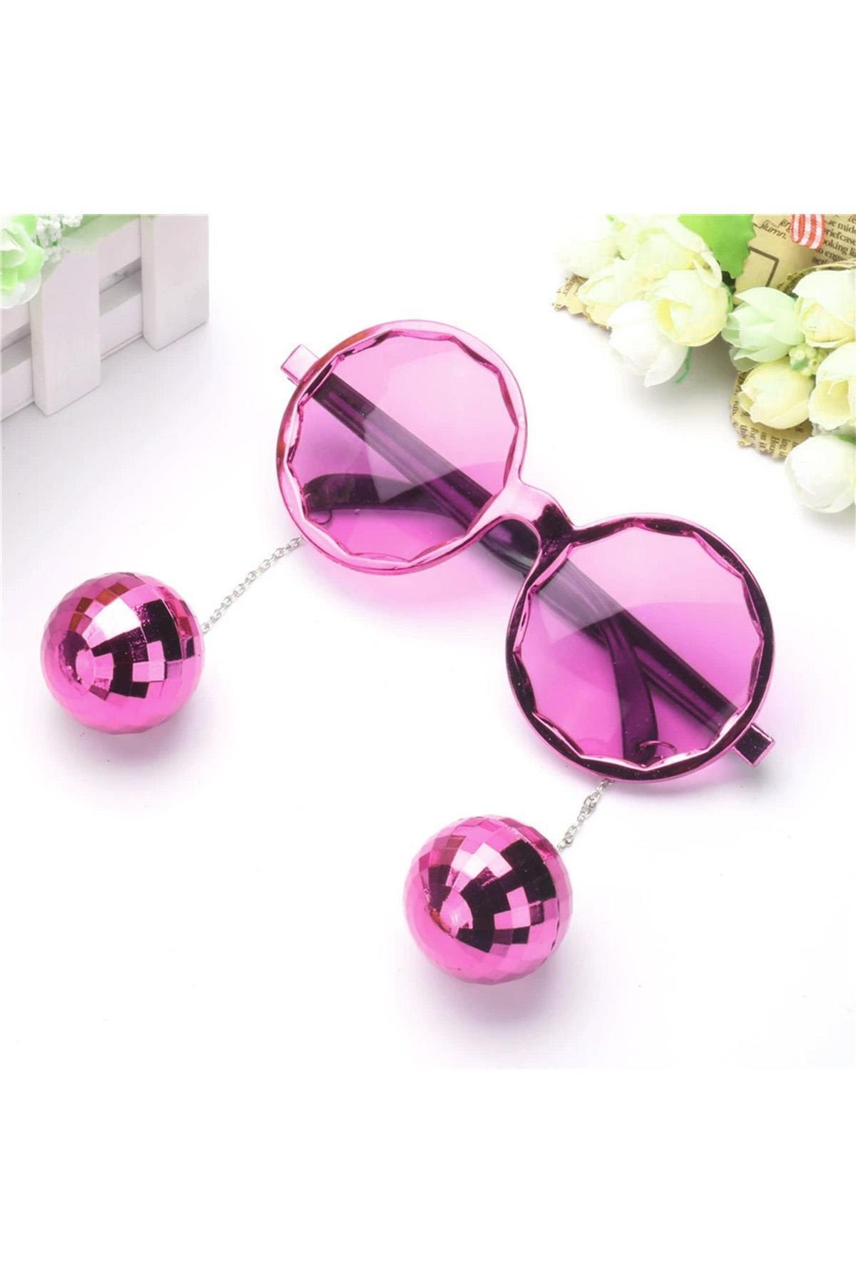 Fuşya Renkli Disko Toplu Küpeli Parti Gözlüğü