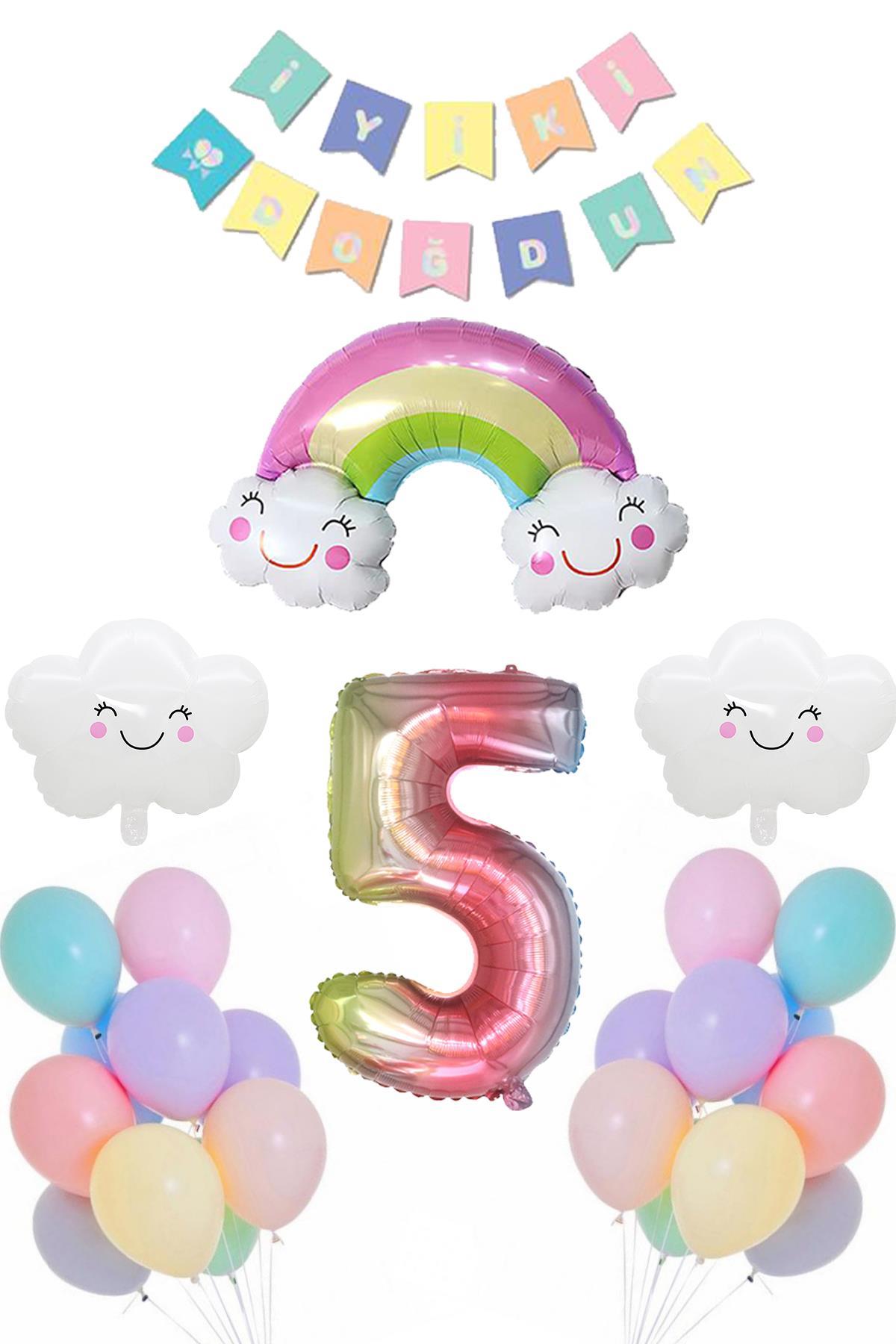 Gökkuşağı Bulut Temalı 5 Yaş Doğum Günü Parti Kutlama Seti