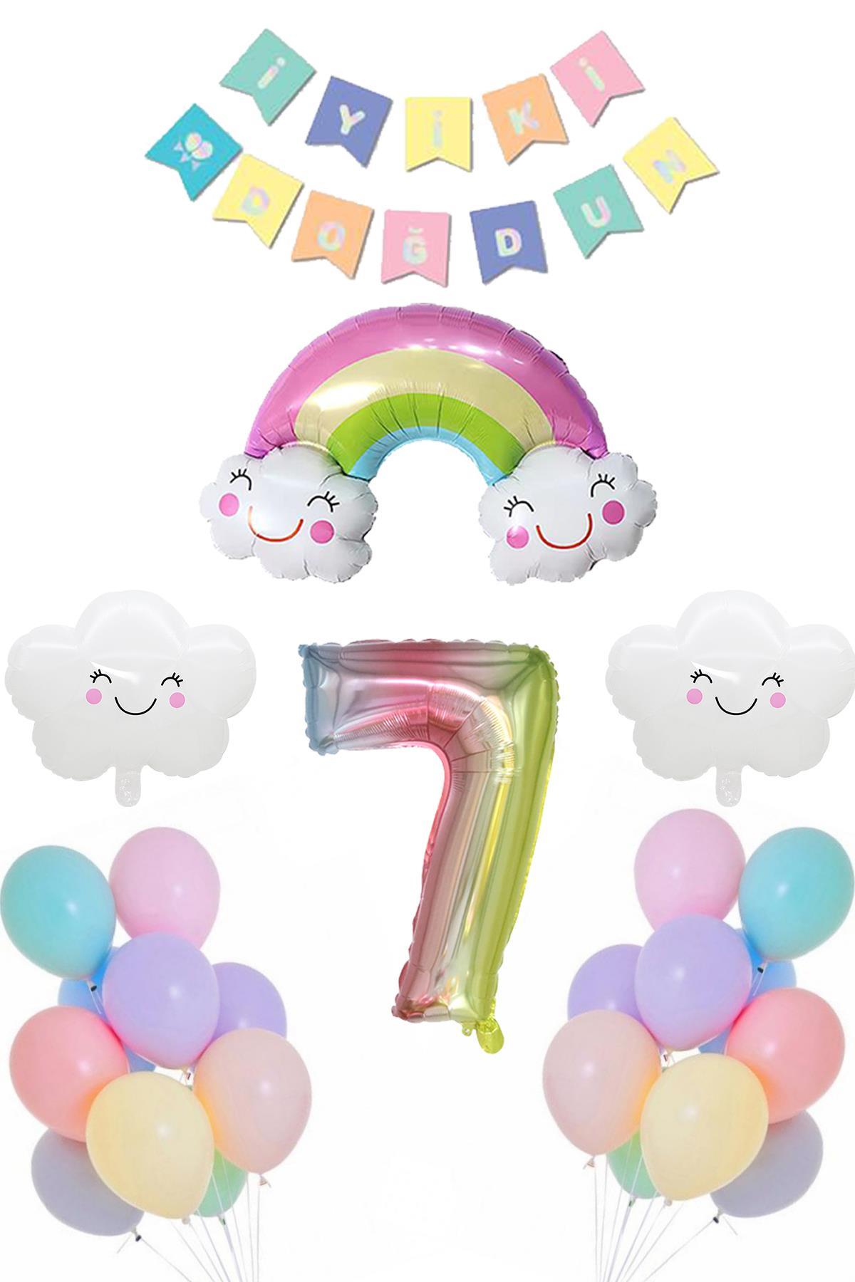 Gökkuşağı Bulut Temalı 7 Yaş Doğum Günü Parti Kutlama Seti