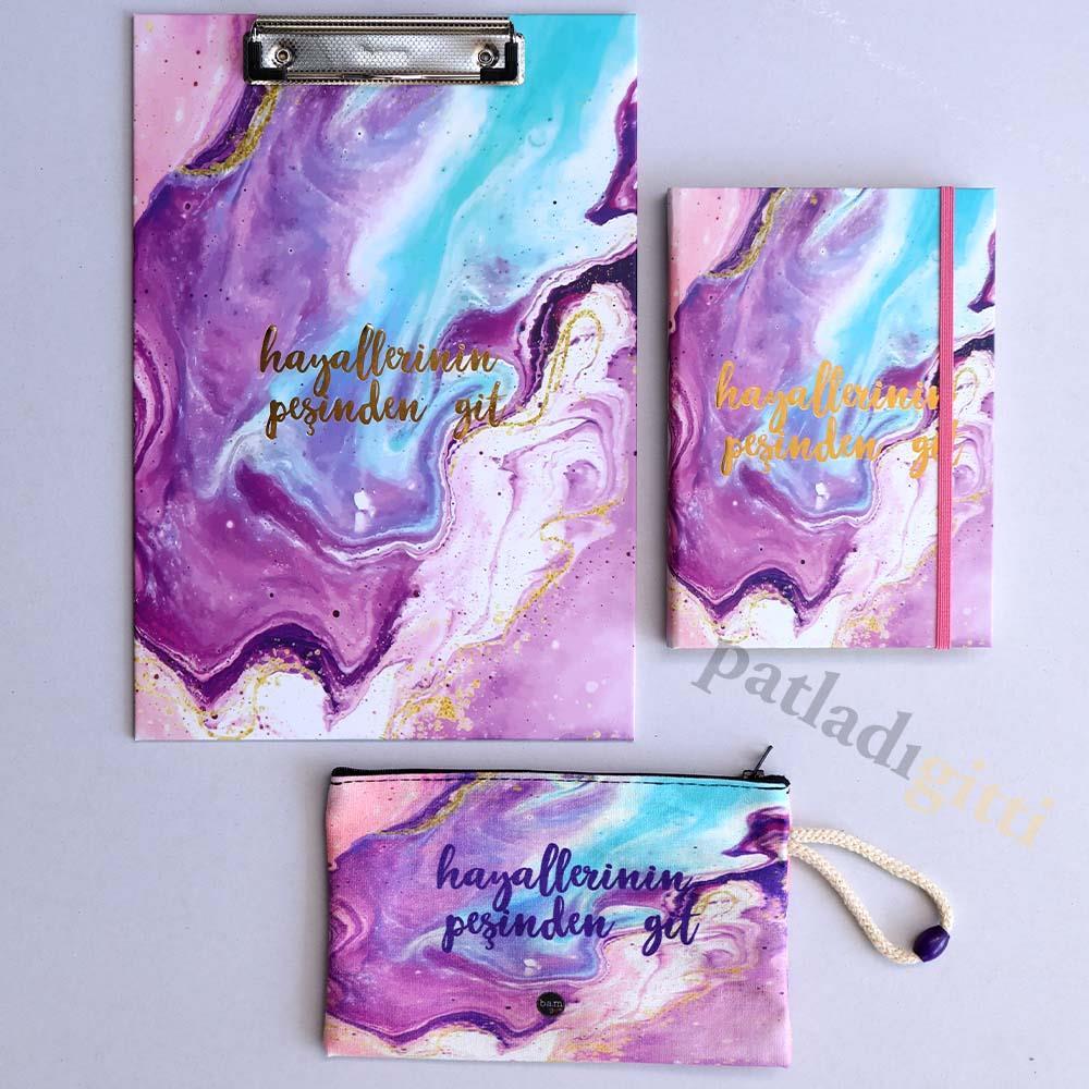 Hayallerinin Peşinden Git Tasarımlı Sekreterlik Defter Kalemlik Hediye Seti