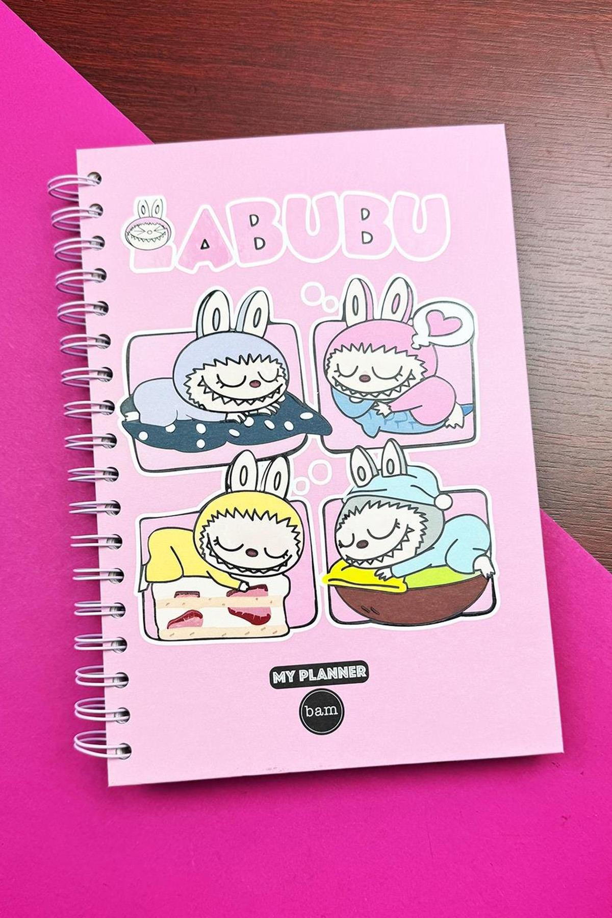Labubu Tasarımlı Spiralli Sticker'lı Tarihsiz Konuşan Ajanda Haftalık Planlayıcı Defter
