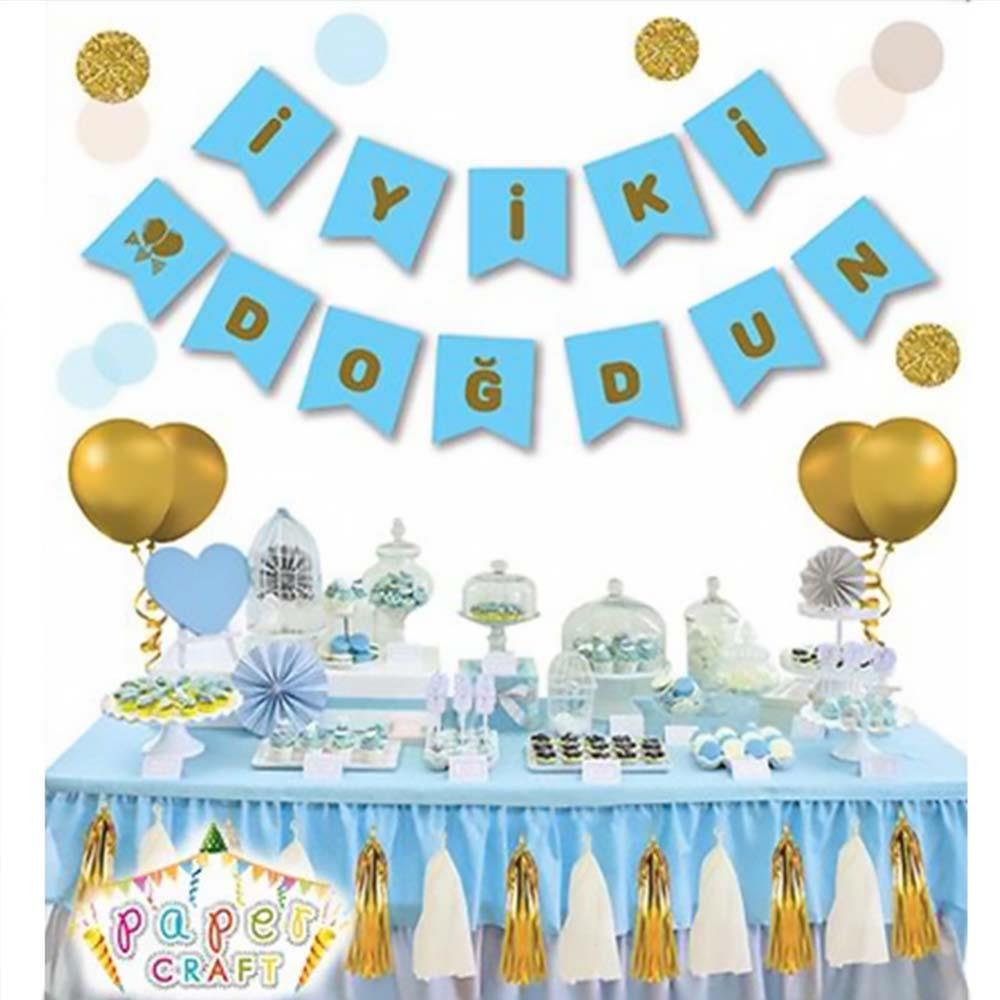 Mavi Zemin İyi Ki Doğdun Gold Banner