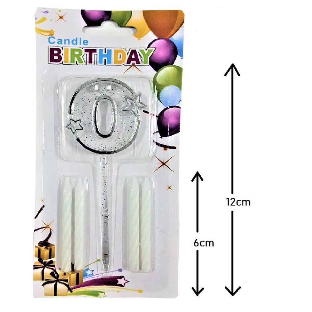 Mika Şeffaf 0 Rakam Gümüş Mum Set