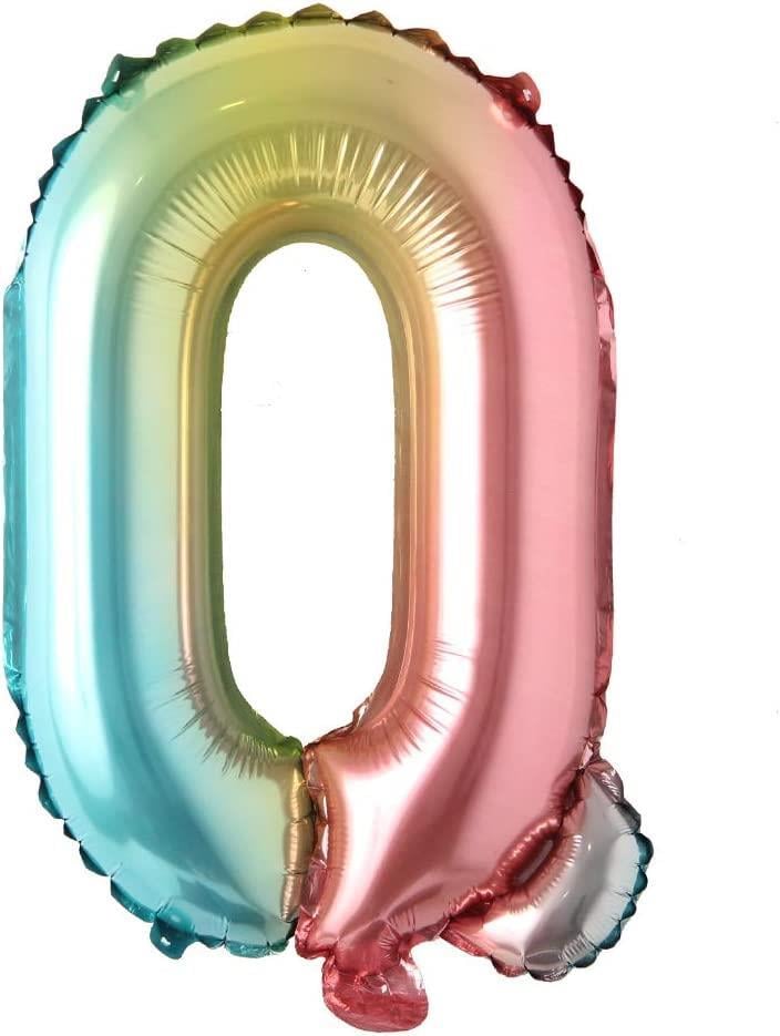Q Harf Rakam Gökkuşağı Folyo Balon 16" Inc 36 cm
