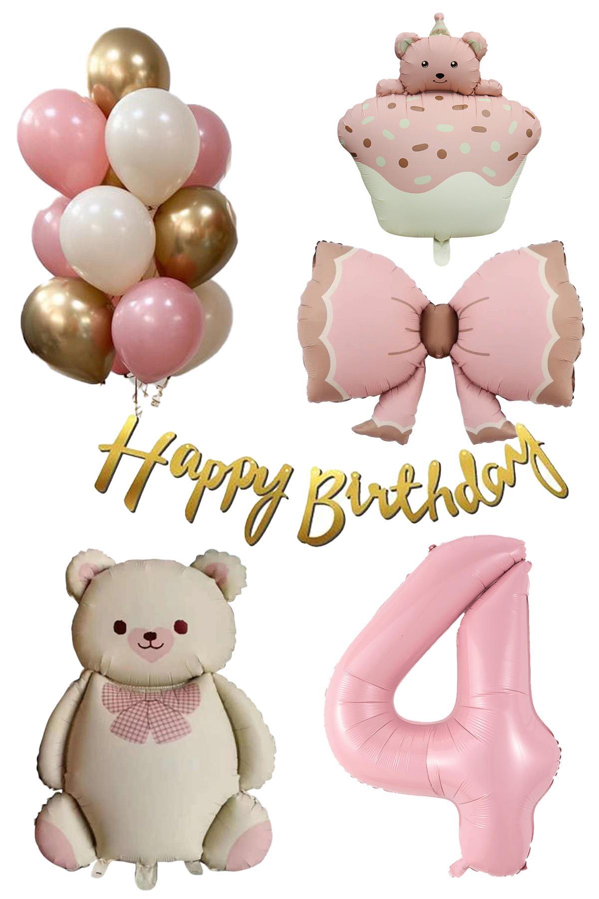 Retro 4 Yaş Ayıcık Temalı  Kız Bebek Konsept Doğum Günü Seti