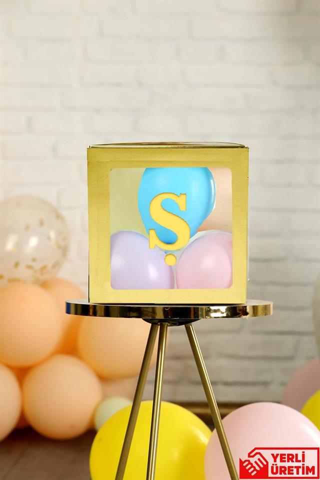 Ş Harfli Gold Şeffaf Büyük Boy 25*25 cm Balon Kutusu Kendin Yap Doğum Günü Parti Kutlama Seti