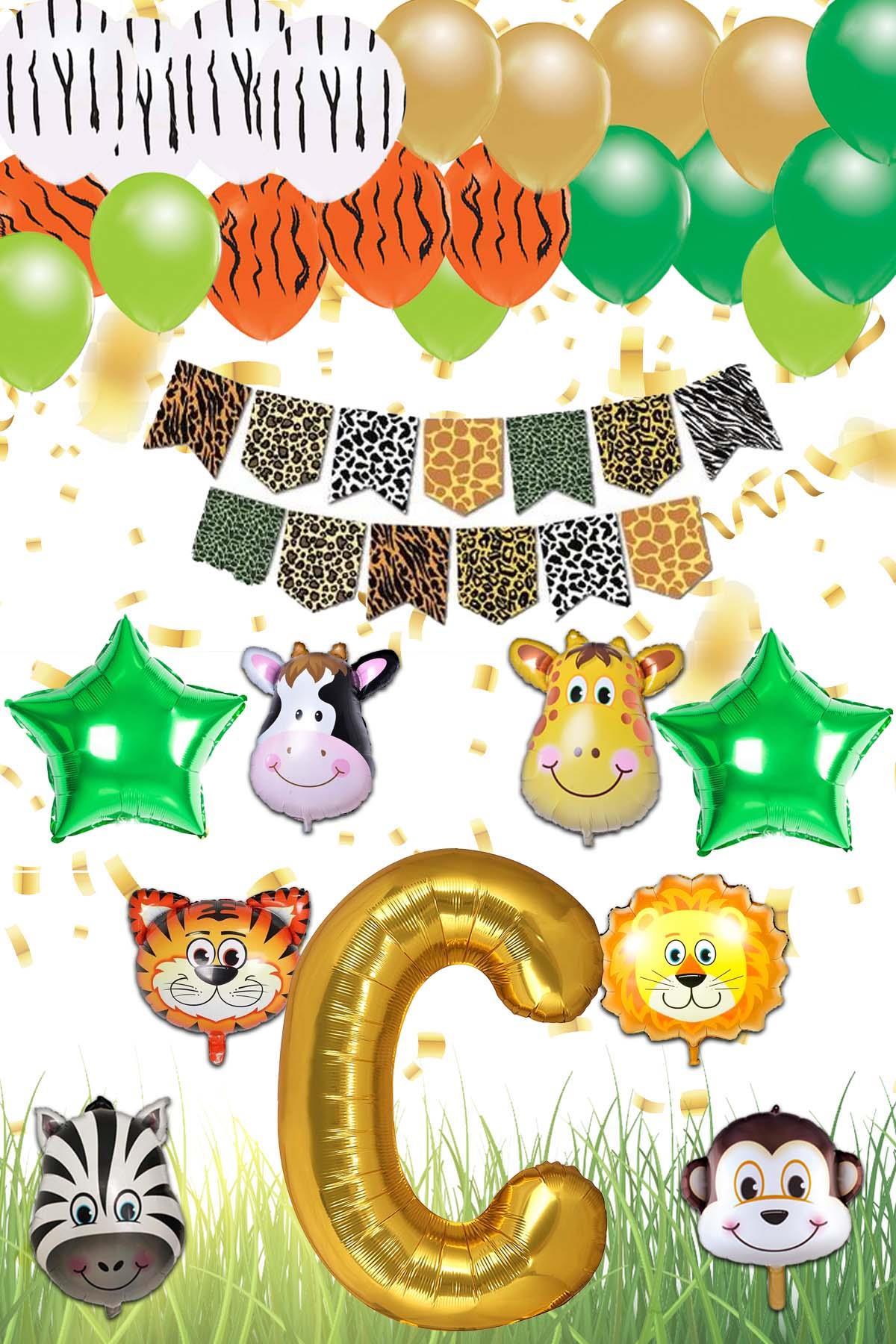 Safari Konsepti C Harfli Doğum Günü Parti Kutlama Seti; Harf ve Yıldız Folyo, Banner ve Balon Zinciri