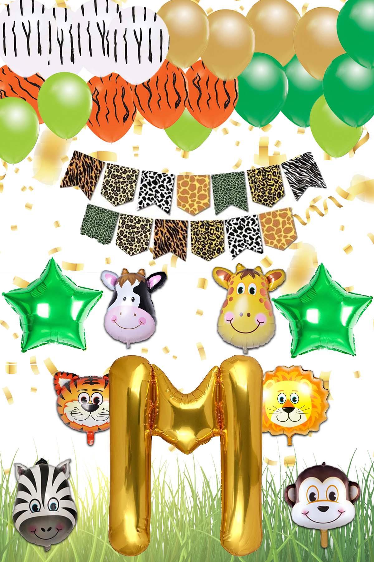 Safari Konsepti M Harfli Doğum Günü Parti Kutlama Seti; Harf ve Yıldız Folyo, Banner ve Balon Zinciri