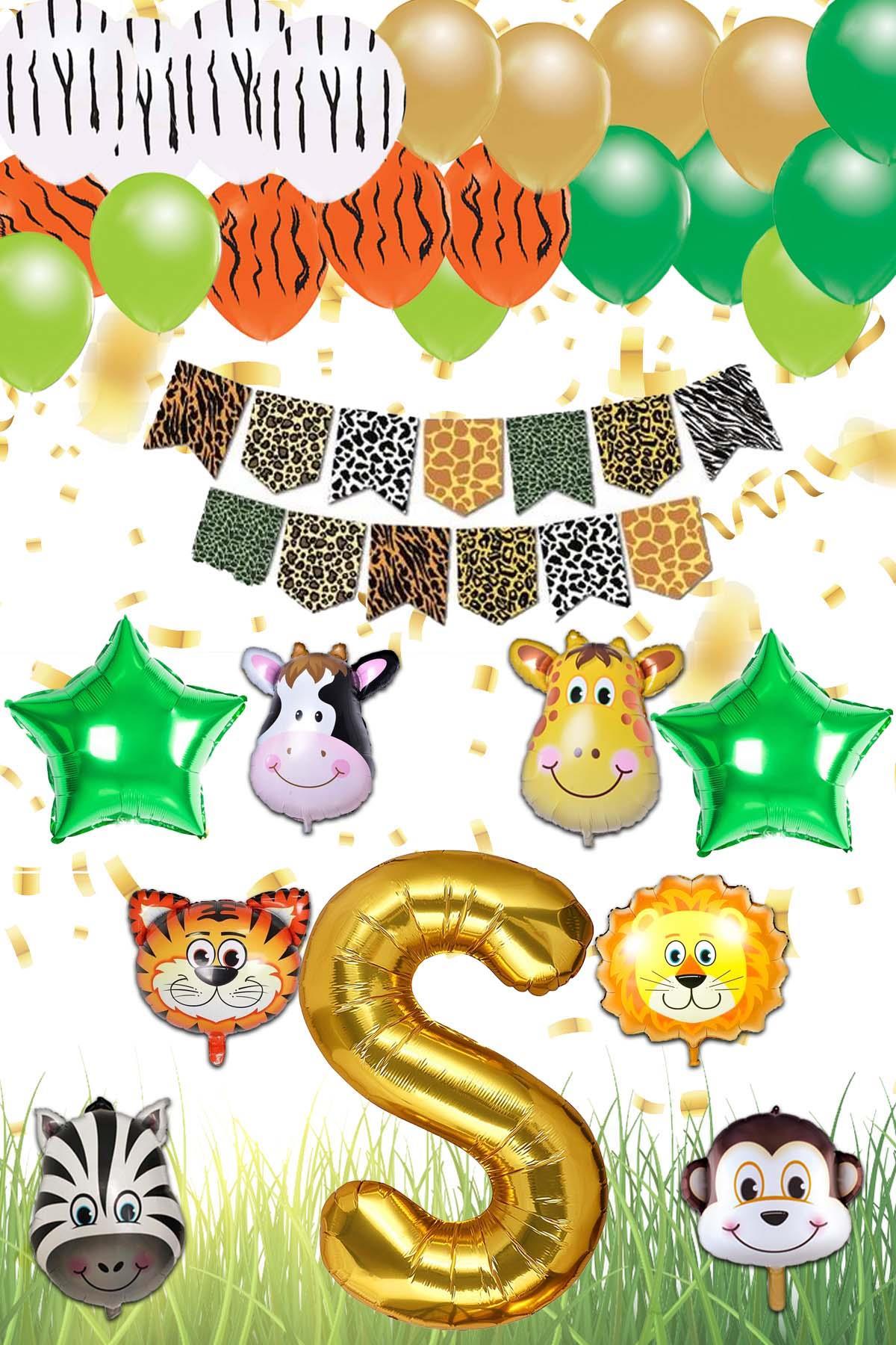Safari Konsepti S Harfli Doğum Günü Parti Kutlama Seti; Harf ve Yıldız Folyo, Banner ve Balon Zinciri
