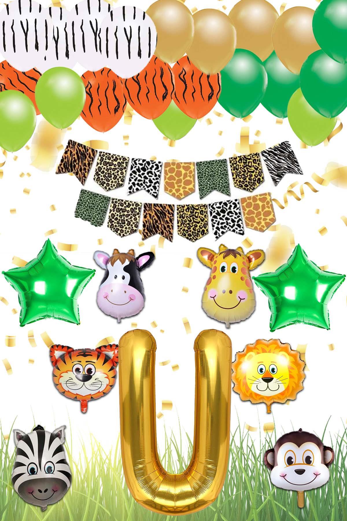 Safari Konsepti U Harfli Doğum Günü Parti Kutlama Seti; Harf ve Yıldız Folyo, Banner ve Balon Zinciri