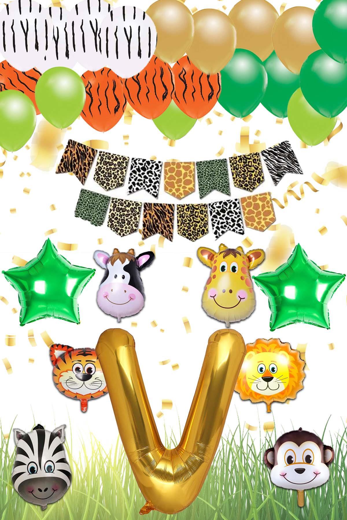 Safari Konsepti V Harfli Doğum Günü Parti Kutlama Seti; Harf ve Yıldız Folyo, Banner ve Balon Zinciri