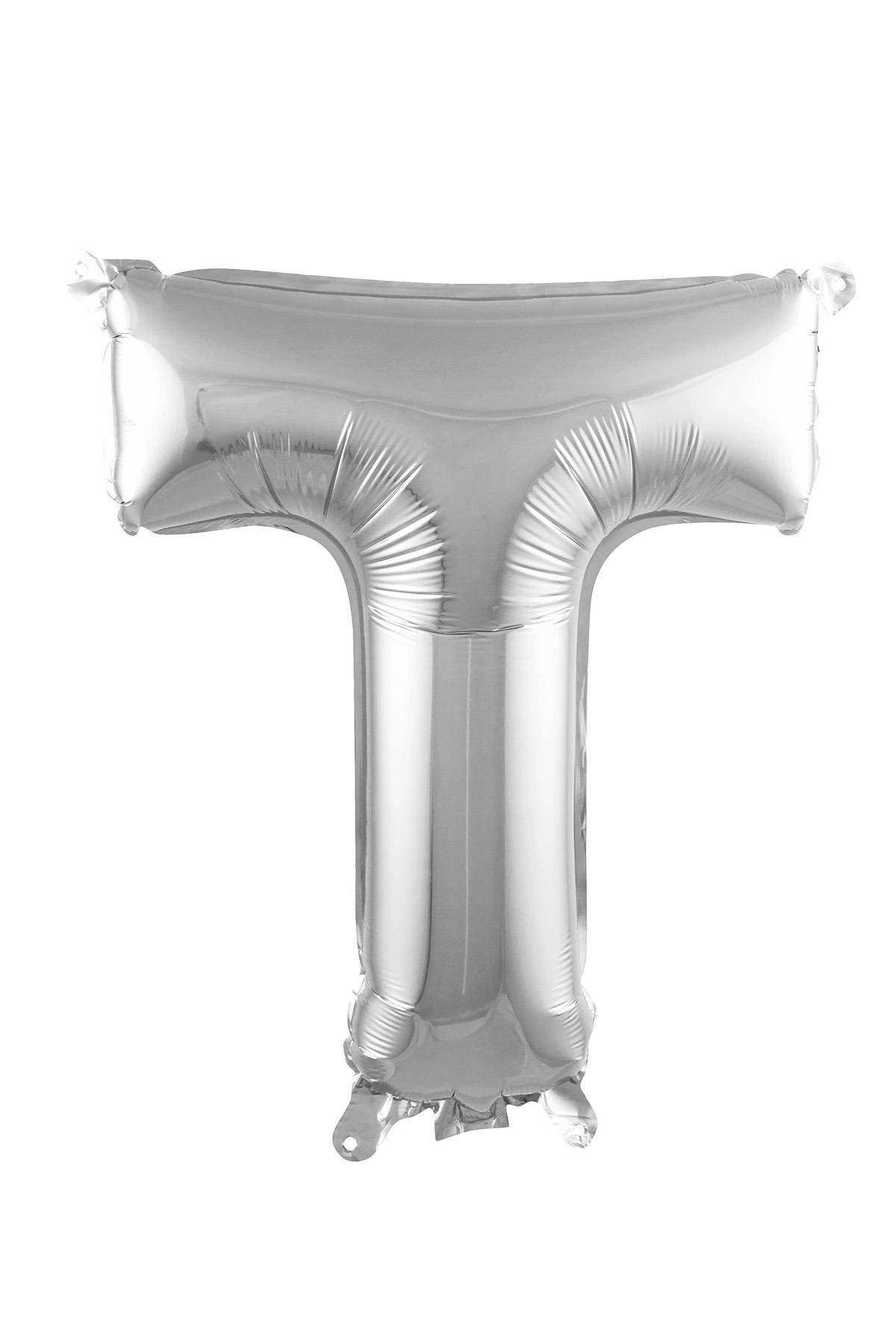 T Harf Gümüş Folyo Balon 16" Inc 36 cm